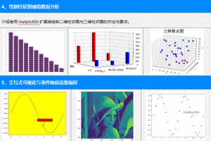 通過大量案例快速介紹Python運算符、表達式、內(nèi)置函數(shù),列表、元組、字典、集合,選擇結(jié)構(gòu)與循環(huán)結(jié)構(gòu),函數(shù)定義與使用,字符串與正則表達式等內(nèi)容。學(xué)習(xí)完這些基礎(chǔ)內(nèi)容之后,重點學(xué)習(xí)文本文件操作、json文件操作、CSV文件操作、Word文件操作、Excel文件操作、網(wǎng)絡(luò)爬蟲原理與應(yīng)用、numpy數(shù)組運算與矩陣運算、pandas數(shù)據(jù)分析、matplotlib數(shù)據(jù)可視化以及sklearn機器學(xué)習(xí)等方面的內(nèi)容。