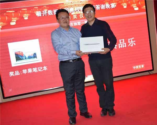 重頭戲來了!有著豐厚獎品、蘋果筆記本的答謝晚宴,精彩紛呈。老師們積極參與游戲,默契的配合,你追我逐的獎品爭奪比拼更是將晚宴現(xiàn)場的氣氛推向了高潮。隨著主持人一聲叫停,超級大獎由中北大學(xué)-秦品樂老師好運獲得,由普開數(shù)據(jù)CEO親自將獎品送給秦老師,要問獲獎感言?2018年666~